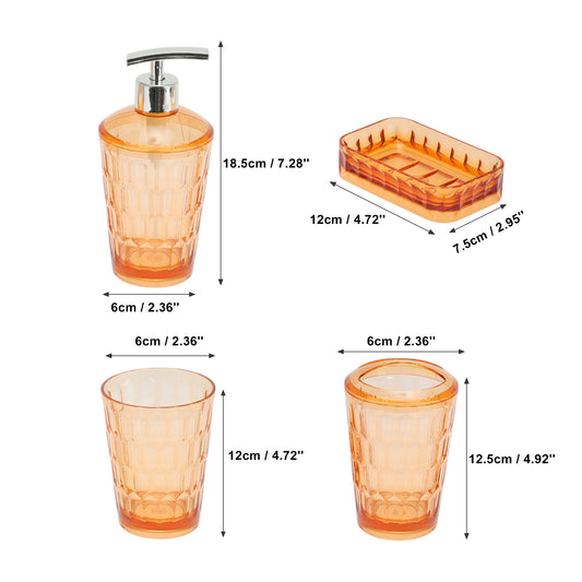 4 Pcs Set Transparent Bathroom Accessories Kit for Home Orange Red