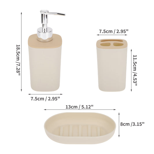 Durable Plastic Square Bathroom Accessories Kit 1 Set Light Brown