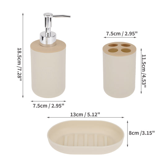 Plastic Durable Round Bathroom Accessories Kit 1 Set Light Brown