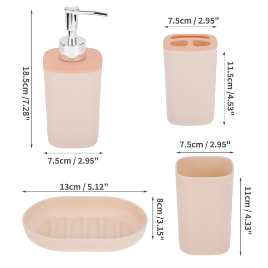 4 Pcs Set Durable Square Bathroom Accessories Kit Pink
