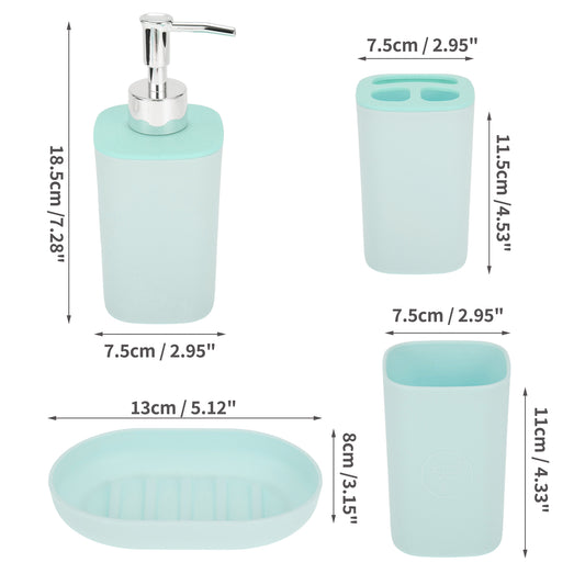 4 Pcs Set Durable Square Bathroom Accessories Kit Blue