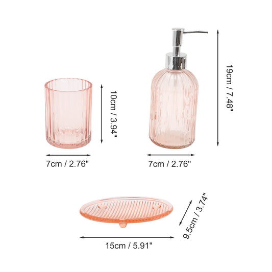 3 Pcs Set Durable Vertical Stripes Bathroom Accessories Kit Pink