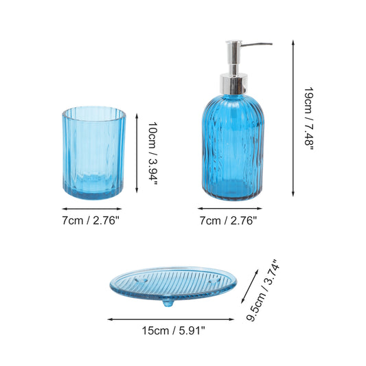 3 Pcs Set Durable Vertical Stripes Bathroom Accessories Kit Blue