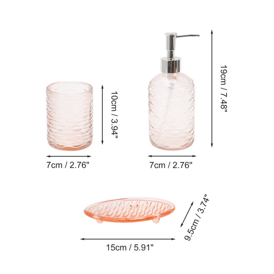 3 Pcs Set Durable Waves Bathroom Accessories Kit Pink