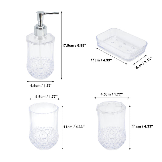 4 Pcs Set Durable Clear Bathroom Accessories Kit for Home Transparent