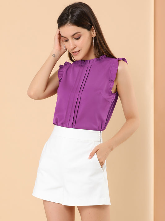 Women's Business Casual Sleeveless Ruffle Blouse Top