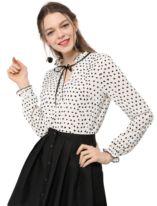 Women's Bow Tie Neck Blouse Ruffled Collar Printed Long Sleeve Top