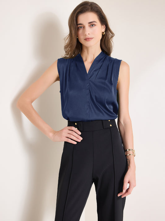 Women's Satin Tank Top V Neck Sleeveless Ruched Summer Tank Shirt