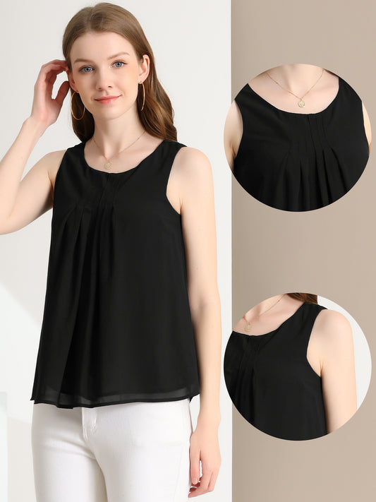 Women's Sleeveless Layering Pleated Front Lined Chiffon Tank Top