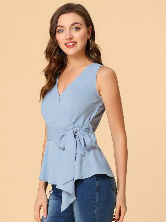 Women's Sleeveless V Neckline Wrap Elegant Tie Waist Top