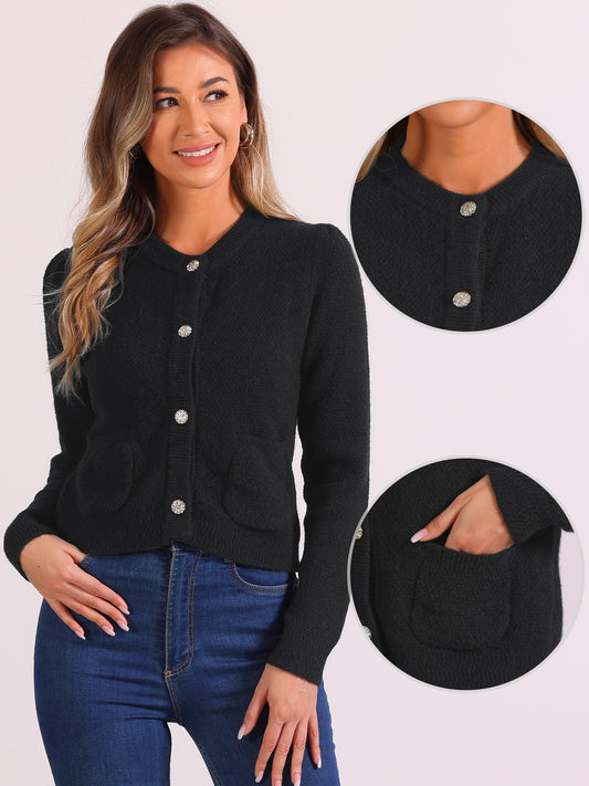 Women's with Pockets Crew Neck Knit Cardigan Sweater Button Down Cardigan