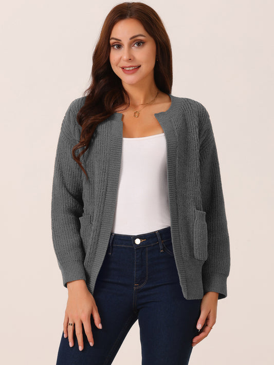Women's Sweater Cardigan Open Front Long Sleeve Knitted Casual Cardigan with Pockets