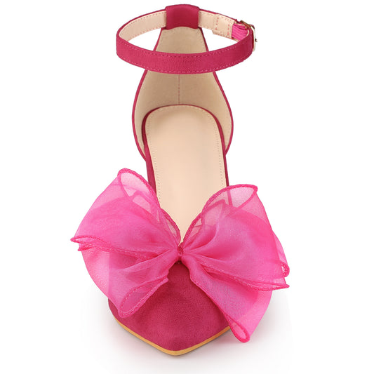 Women's Pointed Toe Bow Satin Stiletto Heels Pumps