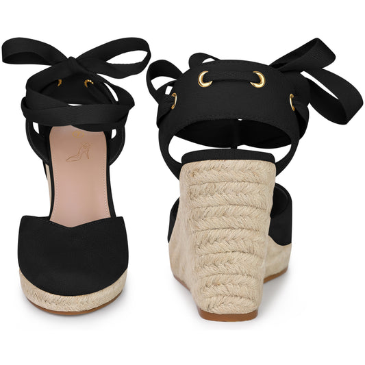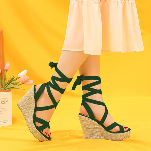 Women's Espadrilles Platform Sandals Lace Up Open Toe Wedges Heels