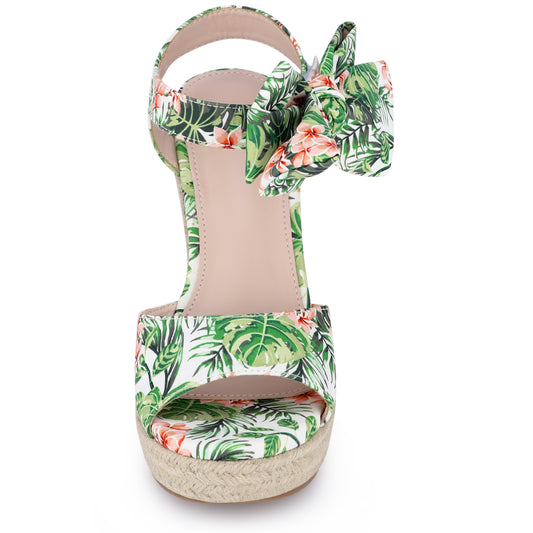 Women's Floral Printed Slingback Espadrille Wedge Sandals