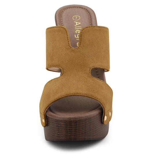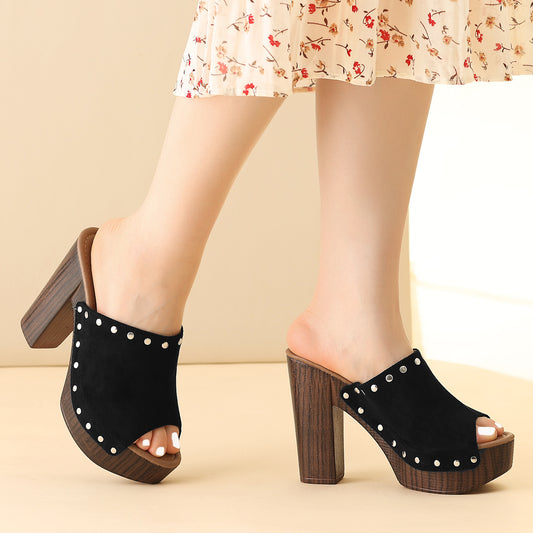 Women's Faux Suede Platform High Block Heel Slides Sandals