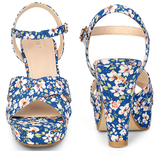 Women Platform Crisscross Strap Chunky Heels Sandals