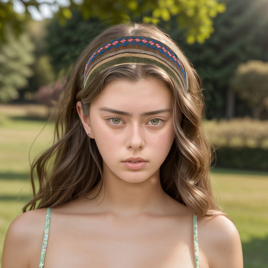 Ethnic Style Ethnic Style Stripes Wide Headband for Women, Brown Green 1 Pc