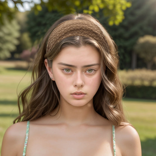 Lace Double Layer Wide Headband for Women Coffee Color 1 Pc
