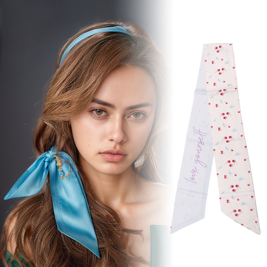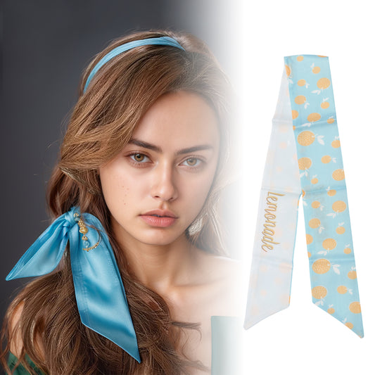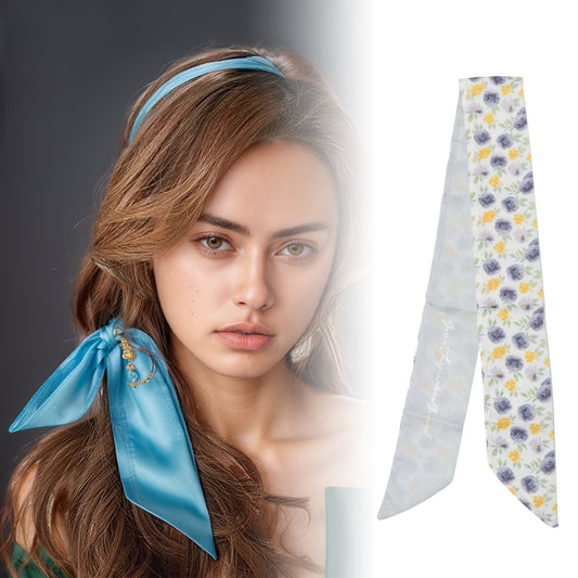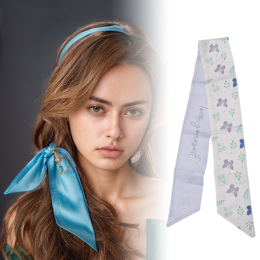Long Ribbon Leaves Pattern Headband for Women Light Blue White 1 Pc