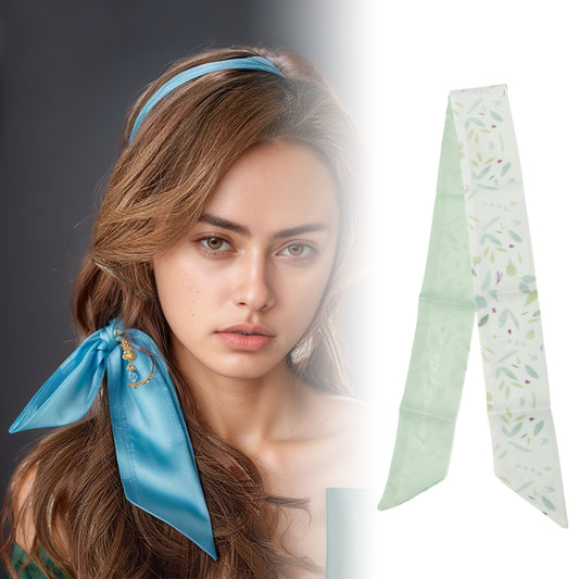 Long Ribbon Leaves Pattern Headband for Women Light Green 1 Pc