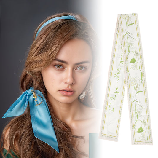 Flower Leaves Long Ribbon Headband for Women Light Green 1 Pc