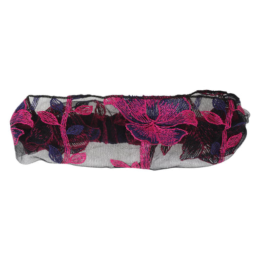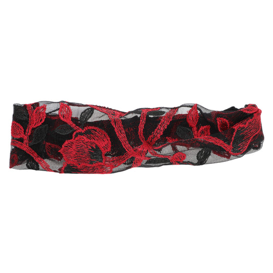 Floral Embroidery Lace Wide Headband for Women Gray Red 1 Pc