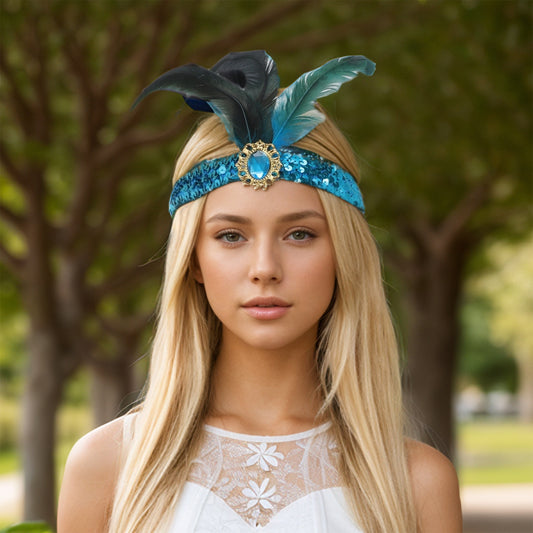 Feather Sequins Headband for Women Lake Blue 1 Pc