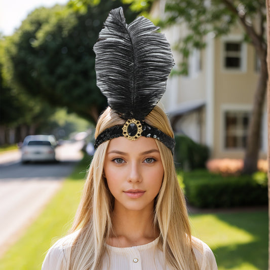 Feather Faux Diamond Sequins Headband for Women Black 1 Pc