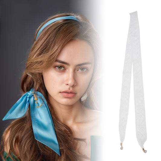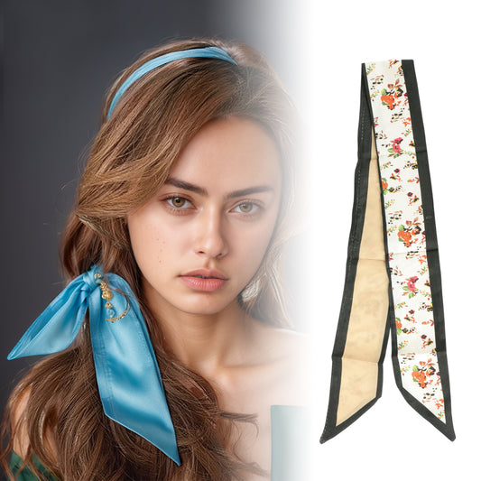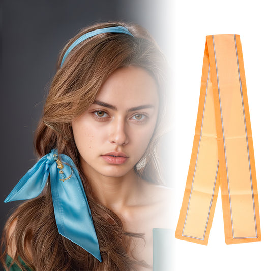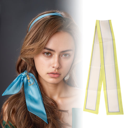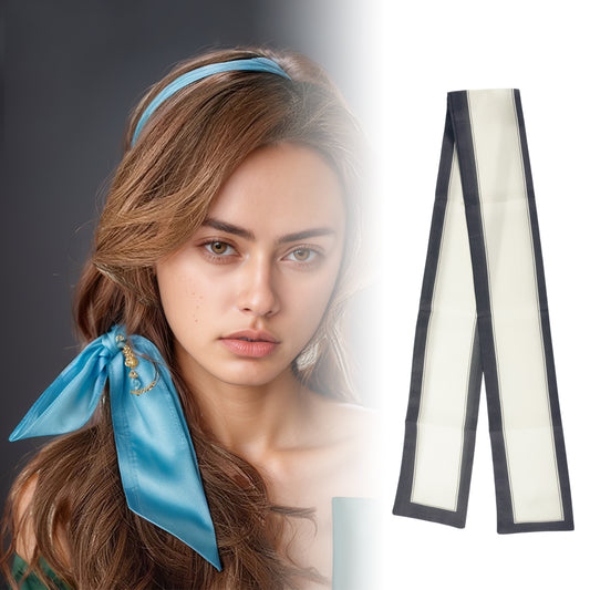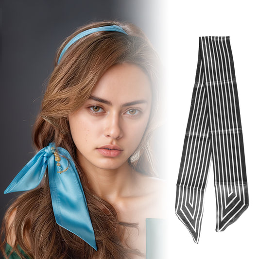 Self-tie Stripes Satin Headband Neckerchief for Women Black White 1 Pc