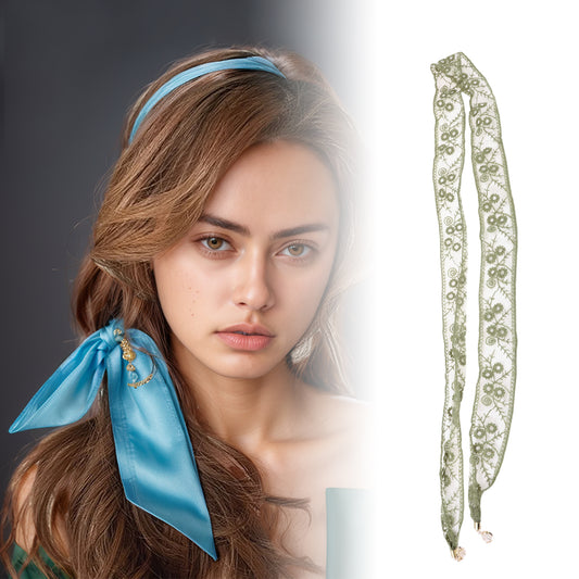 Pendants Decor Lace Embroidery Self-tie Headband for Women Green 1 Pc