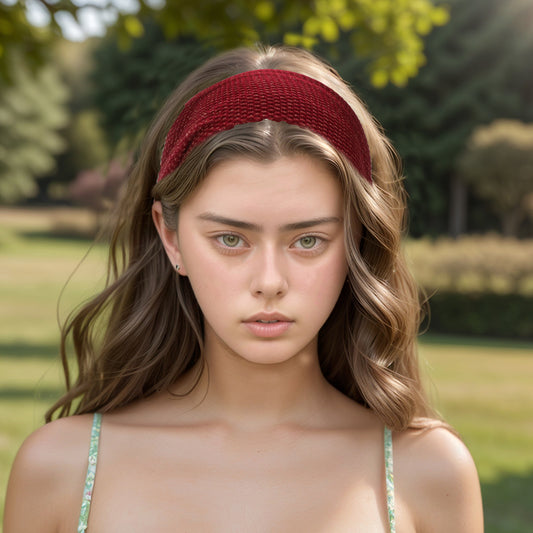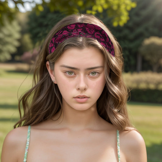 Lace Hollow Wide Headband for Women Wine Red 1 Pc