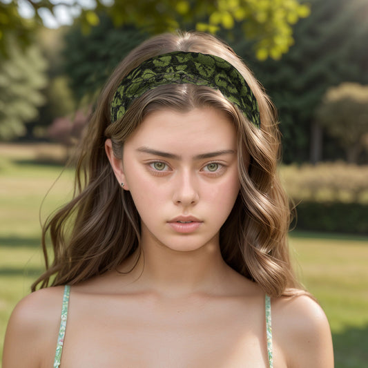 Lace Hollow Wide Headband for Women Blackish Green 1 Pc