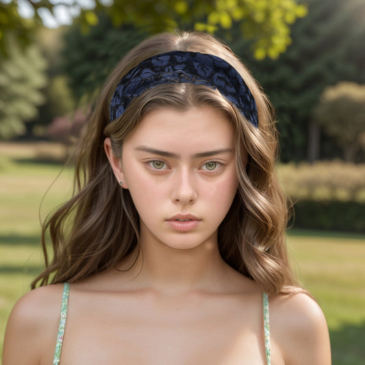 Lotus Lace Wide Headband for Women Navy Blue 1 Pc