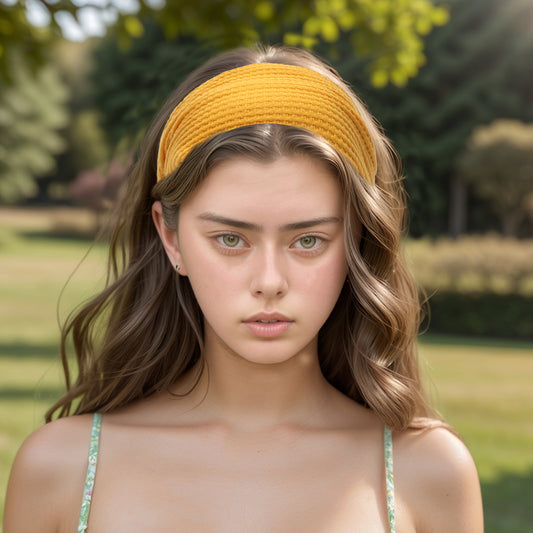 Wide Solid Textured Headband for Women Yellow 1 Pc
