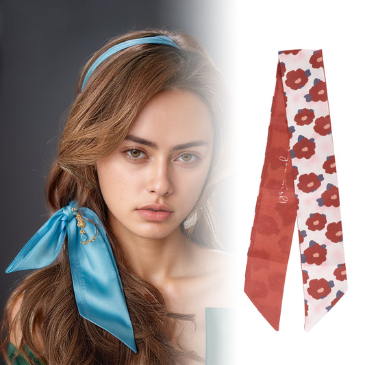 Flower Print Satin Self-tie Headband for Women Beige Red 1 Pc