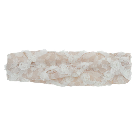 Eight-leaf Flower Lace Wide Headband for Women Beige 1 Pc