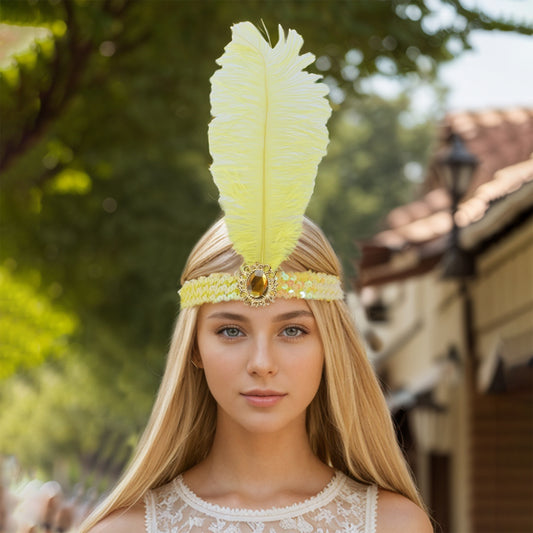 Feather Faux Diamond Sequins Headband for Women Yellow 1 Pc