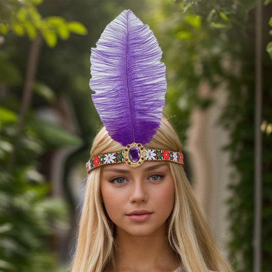 Tribal Style Feather Headband for Women Dark Purple 1 Pc