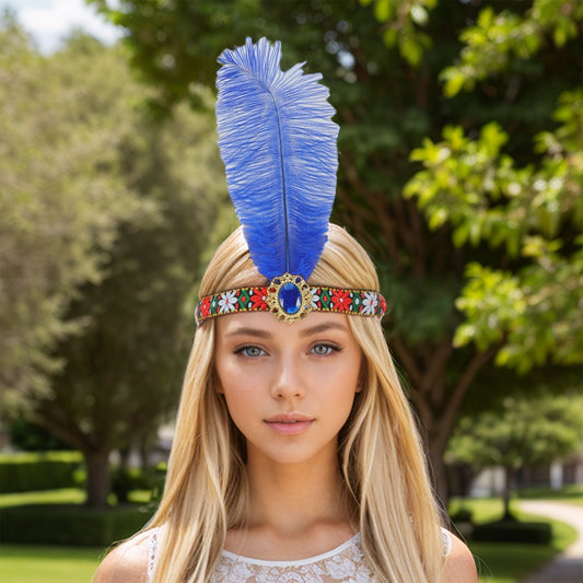 Tribal Style Feather Headband for Women Blue 1 Pc