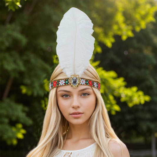 Tribal Style Feather Headband for Women White 1 Pc