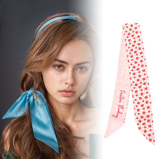Fruit Long Ribbon Headband for Women Light Pink Red 1 Pc