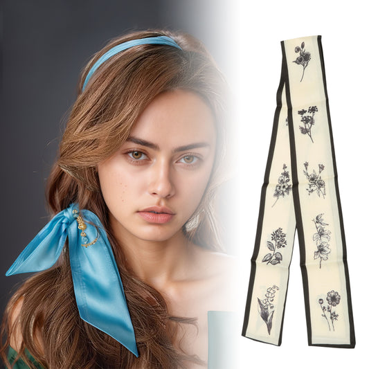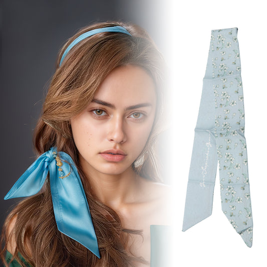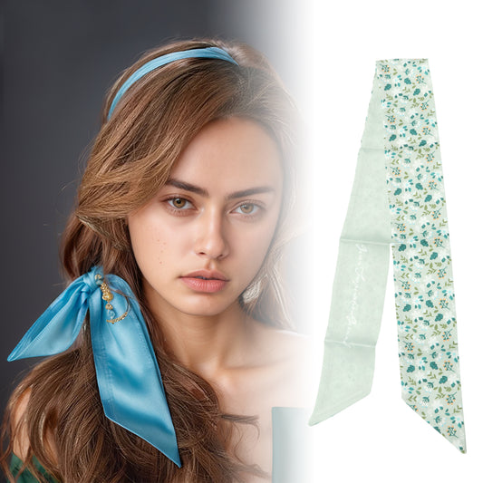 Ditsy Flower Long Ribbon Headband for Women Green 1 Pc