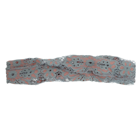 Flower Thin Lace Wide Headband for Women Gray Pink 1 Pc