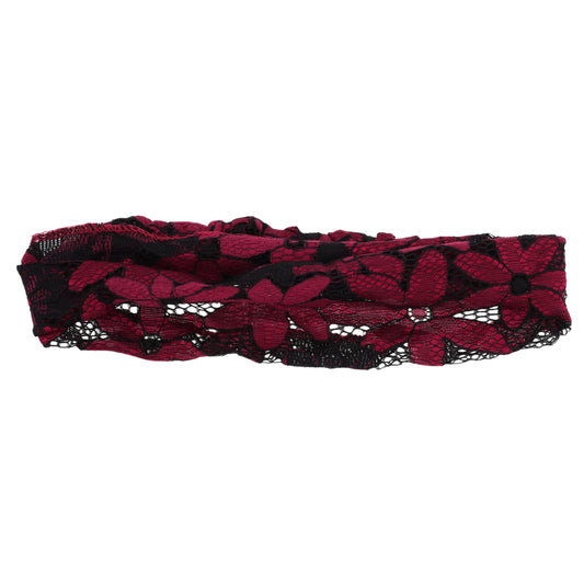 Flower Lace Wide Headband for Women Wine Red 1 Pc