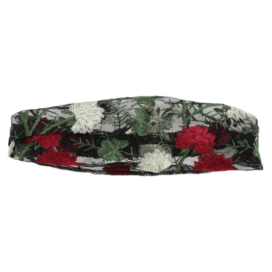 Floral Embroidery Lace Wide Headband for Women Red Green 1 Pc