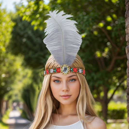 Tribal Style Feather Headband for Women Gray 1 Pc