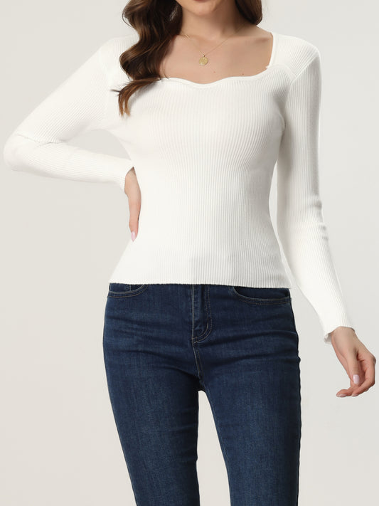 Women's Casual Sweetheart Neck Sweater Long Sleeve Top Slim Fit Pullover Sweater