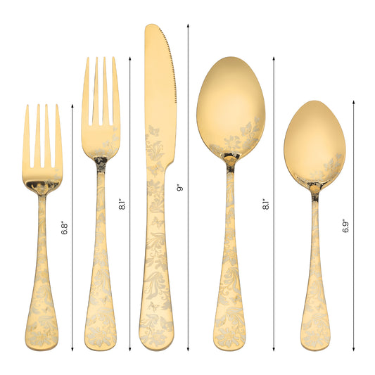 24 Pieces Silverware Set, Stainless Steel Floral Flatware Set for 6, Modern Cutlery Set