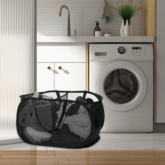 Foldable Cylindrical Laundry Basket for Laundry Room 19.69"x15.75" 60L Black Semicircle